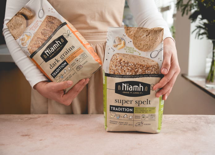 Met liefde voor lekker bakken en oog voor de laatste trends, brengt het Belgische bakmerk Niamh creativiteit in de bakhoek. Dit jaar voegt Niamh twee nieuwe broodmixen toe aan hun Tradition gamma: ‘Tradition Super Spelt’ en ‘Tradition Dark Grains’. Ideaal voor de creatieve thuisbakkers die graag zelf gist, boter, zout en water toevoegen.